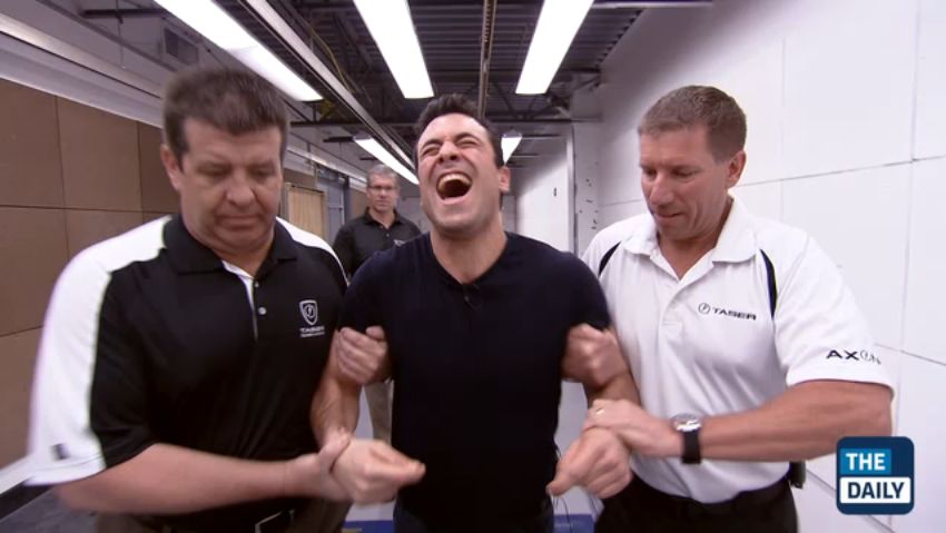 Prawdziwy dziennikarz dla swojej pracy jest w stanie znieść naprawdę wszystko. Nawet jeśli jest to sprawdzenie na sobie działania nowej broni, używanej do unieszkodliwiania ludzi - bez zabijania ich. Przekonajcie się, oglądając załączone wideo.