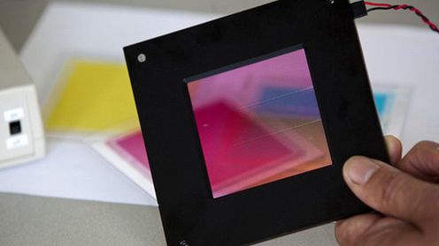 Piszę o tym dlatego, że e-skóra opiera się na bardzo podobny założeniu. Z tą tylko różnicą, że wykorzystuje całą paletę kolorów, a nie tylko biel i czerń! Co więcej, nasycenie każdej barwy jest kontrolowane oddzielnie, dzięki czemu w łatwy sposób można uzyskać różne odcienie.
