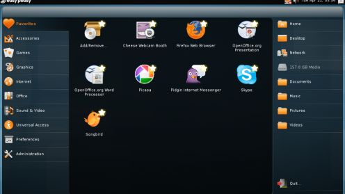 Jak łatwo się domyślić po screenie, system jest dopasowany do komputerków typu netbook i przejął układ menu głównego z Ubuntu Netbook Remix.