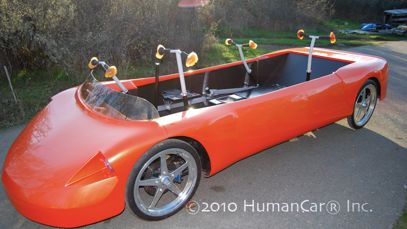 Pomysł na zasilany siłą ludzkich mięśni pojazd pojawił się w głowie Greenwooda prawie trzydzieści lat temu. Wehikuł napędzany jest za pomocą rąk użytkowników w chwili słabości kierowca może włączyć także silnik elektryczny. Konstruktor zapewnia, że HmanCar napędzany przez czwórkę dość silnych ludzi jest w stanie osiągnąć prędkość przekraczającą 100 km/h. Pytanie tylko co stanie się z pasażerami, gdy hybrydowy wynalazek wypadnie z drogi...