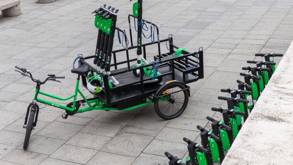 Elektryczne rowery dostawcze Lime umożliwiają jednoczesny przewóz nawet 10 hulajnóg.