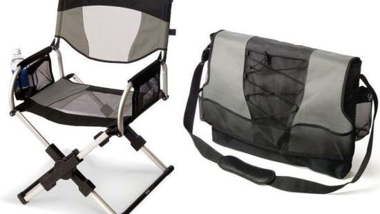 Krzesło składa się w łatwą i wygodną do przenoszenia na ramieniu torbę. Całość waży około 4kg i jest w stanie utrzymać na sobie osobę ważąca ponad 110kg. Wymiary krzesła to 34″ x 22″ x 17″ czyli 81 x 55 x 39cm. Dodatkowo kieszonki na napój jakieś drobiazgi. Cena nie mała bo aż $130, ale co to dla reżysera, dostępne w sklepie Hammacher.
