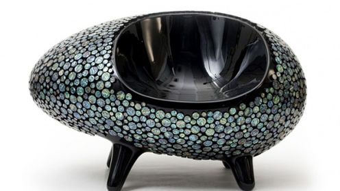 Koreański designer użył do ich stworzenia naturalnej macicy perłowej. A dokładniej rzecz ujmując - setek małych dysków z tego materiału, które odbijają światło w zależności od kąta, pod jakim na nie patrzymy. Coś jak cekiny, tylko że naturalnej masy. I trzeba przyznać, że wygląda to ślicznie. Proszę spojrzeć zresztą na poniższe zdjęcia. Widzimy tam także stolik wykonany w tym samym stylu.