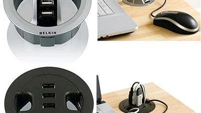 Kojarzycie te wstrętne, okrągłe dziury na kable w biurkach? Jasne, że są praktyczne, ale nie ma chyba nic bardziej obrzydliwego niż wielki otwór w pięknym biurku przykryty na dodatek obrotowym plastikiem. Nie ma się jednak co martwić. Firma Belkin zaprezentowała trzy nakładki na owe otwory, które zamienią koszmar stylistów w marzenie gadżeciarzy.