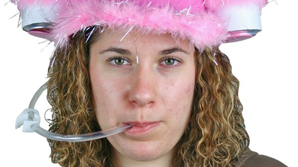Ale, ale, to, co widnieje na fotce, jest chyba nieco bardziej oryginalne. Chodzi o różowy kask piwny dla kobiety. Cóż... W każdym razie jest.