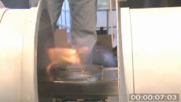 W doświadczeniu wykorzystano podpalone płynne paliwo i dwa głośniki ułożone po obu jego stronach. Widać wyraźnie, że w momencie odtwarzania dźwięku płomień słabnie, a następnie rozprasza się - ten drugi efekt również pomaga w jego ugaszeniu. Wykazano przy okazji, że użyty dźwięk wcale nie musi być głośny. Wystarczy odpowiednia jego modulacja.