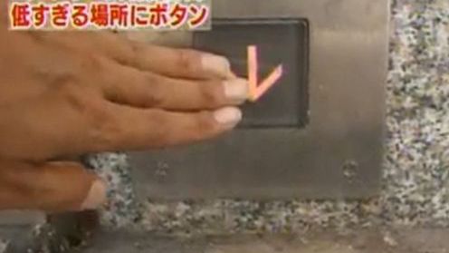 Zdawałoby się, że są rzeczy, które znacznie bardziej potrzebują innowacji niż przycisk wezwania windy. Ale nie dla Japończyków, którzy są w stanie ulepszyć każdą sferę życia. Zapewne myśląc zgodnie z filozofią kaizen, (wprowadzania nieustannych, drobnych ulepszeń), Japończycy zaprezentowali przycisk wzywania windy znajdujący się... przy podłodze. A wszystko to po to, żeby osoby niosące torby w obu rękach nie musiały ich odkładać i mogły po prostu kopnąć przycisk, wzywając tym samym windę.