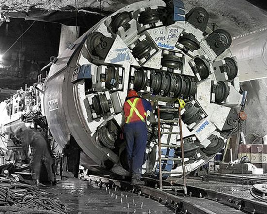 Zdecydowanie do grona największych i najbardziej niesamowitych maszyn stworzonych przez człowieka należą ogromne wiertła drążące tunele. To dzięki wielkim maszynom, takim jak ta, którą widzicie na powyższym zdjęciu, możliwa jest sprawna budowa tuneli nawet w litej skale. Spróbuję przyjrzeć się, jak działają i wyglądają te potężne dzieła inżynierskiej sztuki.