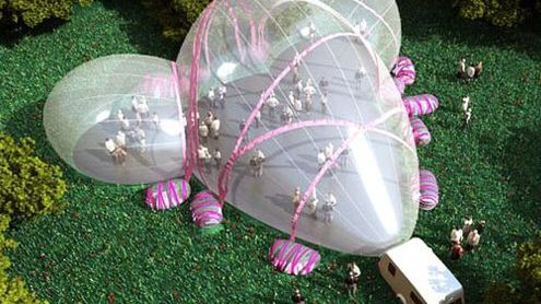 Choć trudno w to uwierzyć, powyższy projekt wcale nie jest futurystycznym konceptem, ale rzeczywiście stanie się częścią londyńskiego krajobrazu tego lata. Różowy, dmuchany pawilon zwany "Portavilion", będzie pojawiał się w Londynie przy okazji rozmaitych wydarzeń i imprez.