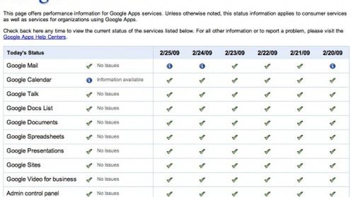 Google Apps Status Dashboard - sprawdź które usługi Google nie działają