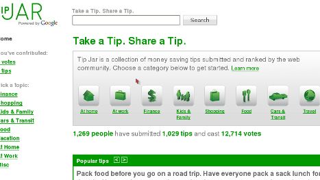 TipJar to do bólu zielona strona podzielona na kilka kategorii: dom, praca, finanse, dzieci i rodzina, zakupy, jedzenie, transport, podróże, w których to znajdziemy tysiące porad z życia wziętych od innych użytkowników, a wszystko ku oszczędności energii, a przede wszystkim pieniędzy i zyska na tym jeszcze środowisko naturalne. Zobaczymy jak serwis się rozwinie, a także Google Moderator w ramach którego został uruchomiony.
