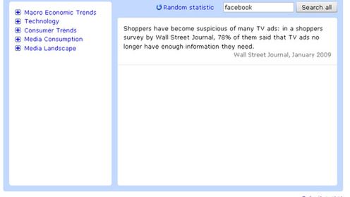 Niestety informacje dotyczą rynku brytyjskiego (czasami europejskiego). Na dodatek nie jest ich wiele. Niektóre kategorie mają tylko po kilka czy kilkanaście faktów. Wyszukiwanie takich słów jak "facebook" czy "twitter" daje raptem po jednym wyniku.
