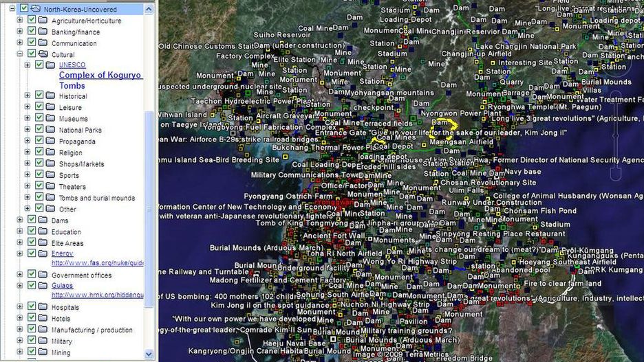 Dzięki wiedzy zdobytej podczas kilkakrotnych wizyt w Korei Północnej oraz wskazówek od innych „turystów” bywających w tym kraju, Curtis umieścił w Google Maps obiekty, takie jak tajne więzienia, ogromne mogiły oraz miejsca, w których składowane są rakiety. Na mapę weszły już tysiące osób, a projekt o nazwie „North Korea Uncovered” jest jak dotychczas najbardziej wyczerpującą mapą Korei Północnej.
