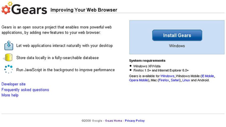 Firma Google poinformowała oficjalnie o wstrzymaniu rozwoju platformy Gears. Zapewniająca dostęp offline do aplikacji sieciowych usługa zostanie całkowicie zastąpiona nowymi rozwiązaniami oferowanymi przez standard HTML5.