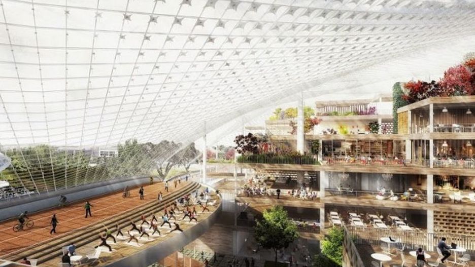 Ciekawym pomysłem jest również całkowite ukrycie prywatnych samochodów – choć kompleks budynków będzie posiadał parkingi, to miejsca parkingowe zostały ukryte pod ziemią. Pracownicy będą za to mieli do dyspozycji liczne ścieżki rowerowe, a komunikację na dalsze odległości mają zapewniać autonomiczne pojazdy.