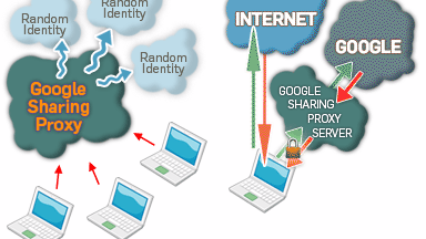 GoogleSharing rozpoznaje czy użytkownik korzysta z usług Google'a, które nie wymagają logowania się. Jeśli jest to usługa wyszukiwania, rozszerzenie rozdziela wpisana frazę od ciasteczka i po zaszyfrowaniu wysyła do anonimowego serwera proxy.