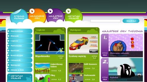 Gry podzielono na dziewięć kategorii tematycznych. Są to: zręcznościowe, ubieranki, logiczne, platformowe, sportowe, konstrukcyjne, celowniczki, wyścigowe i zabawy w dom. Każdą grę, w którą zagramy można ocenić, a te najbardziej lubiane przez użytkowników znajdziemy na stronie głównej.