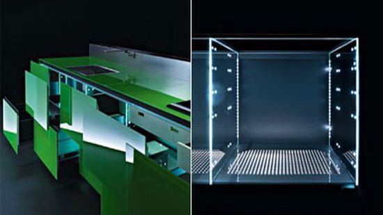 Płaskie, eleganckie blaty drzwiczek, przeszklone szafki, design jak z najwyższej półki (cenowej przede wszystkim), i praktycznie wiekuista gwarancja na żywotność większości elementów. Tak prezentuje się jedna z kuchni z serii "gReenaissance" projektu Gabrielle Centazzo. Prawdopodobnie nigdy nie wyrzucicie tych mebli na śmietnik.
