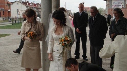 Panna młoda przepięknie wyglądała, a i pan młody brzydotą jej urody nie oszpecał.