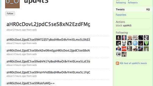 Nazario znalazł w Twitterze konto o nazwie "upd4t3". Publikowano tam z pozoru bezsensowne ciągi liter i cyfr. Po ich rozszyfrowaniu okazało się, że we wpisach ukryto linki, które zarażone pecety wykorzystywały do aktualizowania zainstalowanych w nich koni trojańskich i innych robaków.