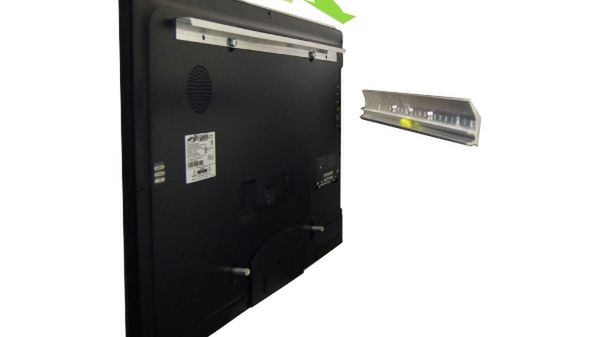 Pomysł jest tu bardzo prosty. Wieszak składa się z dwóch elementów: części przykręcanej do telewizora, zgodnej z popularnym standardem VESA, i drugiego elementu, który przykręca się do ściany. Później wystarczy podnieść telewizor, wprowadzić kółka w prowadnicę i voila! Telewizor wisi sobie spokojnie, a trzeba już tylko zadbać o maskowanie zwisających przewodów (z utęsknieniem czekam na czasy całkowicie bezprzewodowej komunikacji).