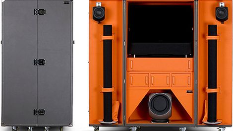 PInel Pinel’s to niezwykły pomysł na kino domowe. Cały system ukryty między półkami i wnękami otwieranego wielkiego kufra, wliczając wyświetlacz, głośniki oraz odtwarzacz DVD.