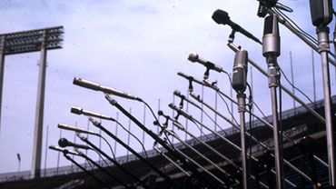 Powyższa fotka pochodzi z roku 1976 i przedstawia wszystkie gadżety elektroniczne Sony dostępne w tym czasie. Są tutaj radia,telewizory, mikrofony... wszystko zostało ustawione na trybunach stadionu narodowego w tokijskim Sendagaya.