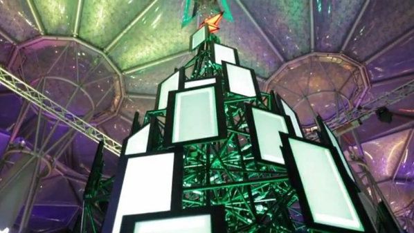 Na ramowym, zwężającym się ku górze szkielecie w formie rusztowania zainstalowano dookoła 48 dużych ekranów LCD. W ten sposób ta 11-metrowa elektroniczna choinka może nadawać (i nadaje) świąteczne pozdrowienia i życzenia zamieszczane na Facebooku w otwartą przestrzeń publiczną. Można odejść od komputera, bez konieczności rozłączania się z portalem społecznościowym. Malkontenci zaraz zauważą, że przecież można mieć mobilny Internet, choćby w smartfonie. Ale mimo wszystko czym innym jest kieszonkowy ekranik, a czym innym monitor o dużej przekątnej, na którym wszyscy wkoło zobaczą, ile to my mamy znajomych i jaka z nas popularna osoba.