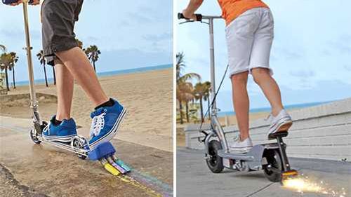 Pierwszy z nich to Razor Grafitti, który wyposażony został w dźwignię umieszczoną tuż nad tylnym kołem. Można do niej przymocować różnokolorową kredę i dzięki niej w czasie jazdy pozostawiać za sobą barwny ślad na chodniku. Dla dzieciaków świetna zabawa, dla właścicieli chodników już trochę mniejsza.