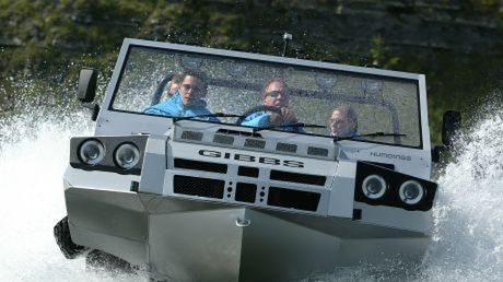 Jeśli kiedykolwiek marzyliście o tym, aby wjechać swoim ciężkim samochodem do jeziora, a potem ze spokojem rozpędzić się do około 65 km/h i "ciąć" jego tafle niczym dobra motorówka, to zdecydowanie powinniście zainteresować się projektem firmy Gibbs Technologies. To monstrum to połączenie Hummera z amfibią, które zarówno na drodze, jak i na wodzie sprawdza się znakomicie!