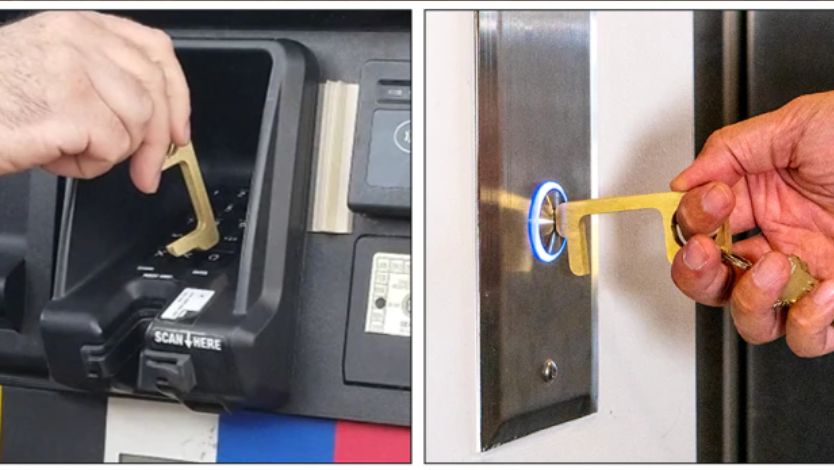 Pomysł jest wyjątkowo prosty. Hygiene Hand to po prostu mosiężny, solidny brelok do kluczy czy plecaka, którego specyficzny kształt – przypominający klucz – pozwala wykorzystywać go na różne sposoby podczas codziennych zajęć.