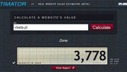 Bo wstukaniu adresu strony, której wartość chcemy poznać licznik Stimatora zaczyna się obracać, koła skryptu zostają wprawione w ruch i poznajemy magiczną liczbę, która ma nam poprawić humor z rana. Na podstawie czego jest ona obliczana? Chyba głównie na podstawie ilości linków i powiązań z innymi stronami. Niby podliczaną są takie tajemnicze czynniki jak "web volume", "linking data" czy "web recognition", ale już autorzy strony nie śpieszą, aby wytłumaczyć o co chodzi.
