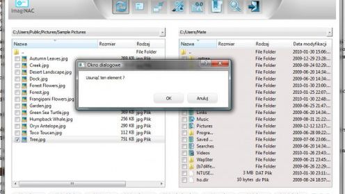 ImagiNAC pomyślany jest także jako prosty menadżer plików - niestety, na bardzo podstawowym poziomie. A na dodatek w założeniu naśladujący dwupanelową ideę pracy z Norton Commanderem lub jego klonami. Owszem, to jest wygodne ale dla mnie, który pierwszego Peceta używał 20 lat temu, a głównym systemem operacyjnym był DOS 3.3 czy w najlepszym przypadku 5.0.