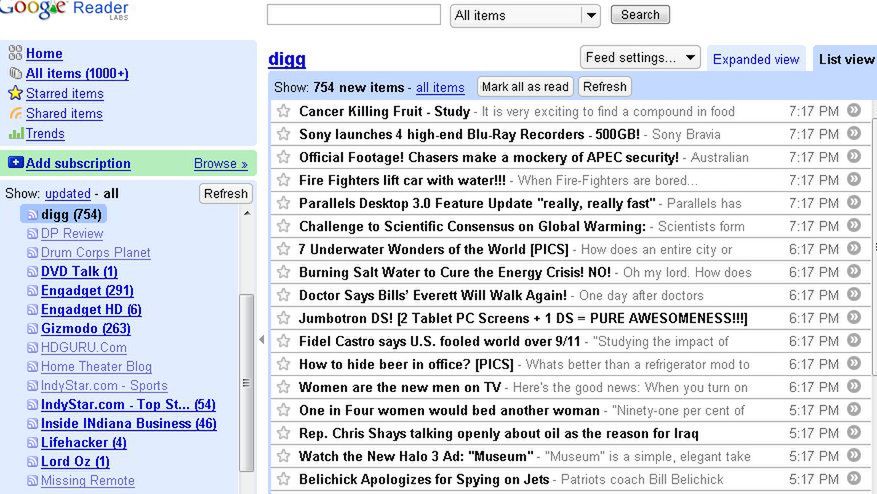 - Wejdź do Google Readera; w panelu nawigacyjnym rozwiń Wszystkie elementy