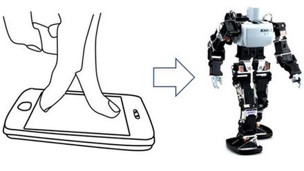 Koncepcja zakłada wykorzystanie iPhone’a do sterowania małym robocikiem w sposób bardziej przyjazny dla przeciętnego użytkownika. Imitując chodzenie po ekranie telefonu zmuszamy robota do poruszania się w wyznaczonym kierunku. Odrywanie palca od powierzchni iPhone’a wywołuje efekt podskoku. Zresztą, zobaczcie sami jak to wygląda na poniższym filmiku: