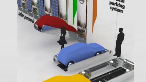 Fotografia poniżej ilustruje zaś koncept systemu "Green P " - w którym na parkingi wykorzystywałoby się każdy wolny skrawek przestrzeni miejskiej (idealnie nadają się do tego miejsca pod mostami czy wiaduktami). Panele słoneczne albo znajdowałyby się gdzieś na obiektach, pod którymi parkowałoby się samochody, albo też na "parasolach" umieszczonych nad pojedynczym stanowiskiem parkingowym.