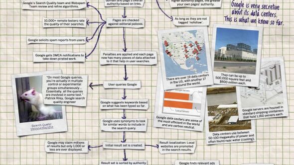 Interesujący nas temat przystępnie przedstawia PPC Blog. Poniższa grafika, (w miarę przystępny sposób) pokazuje jak działa Google page rank - czyli co dzieje się gdy klikamy w magiczny przycisk "szukaj" i jak przetwarzane są reklamy. Poniższe informacje przydadzą się każdemu kto tworzy treści w sieci, lub korzysta z AdWords.