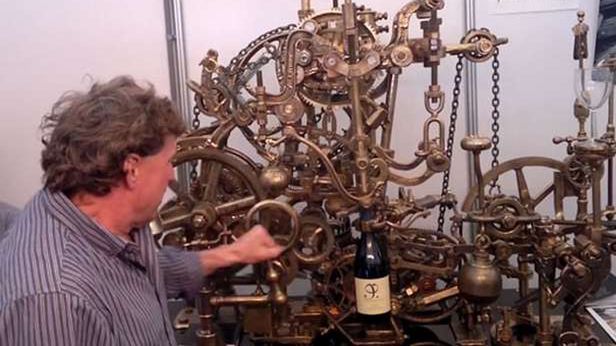Skonstruowany przez Roba Higgsa korkociąg nie ma wiele wspólnego z kieszonkowymi gadżetami, montowanymi między innymi w scyzorykach. Waży prawie 350 kilogramów, mierzy ponad 165 centymetrów wysokości, ponad półtora metra długości i zamiast, jak przystało na korkociąg, chować się w kuchennej szufladzie, zajmuje cały, przeznaczony wyłącznie do tego celu stół.