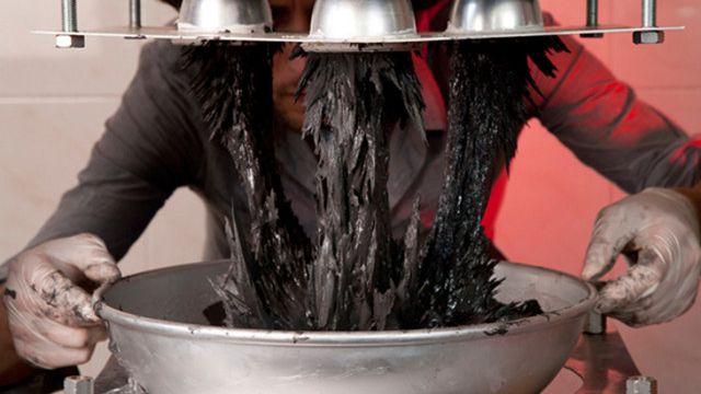 W ten dziwny sposób powstają stołki tworzone przez holenderskiego projektanta - Jólana van der Wiela. Młody artysta wykorzystuje coś w rodzaju odwróconej prasy magnetycznej i mieszanki plastiku oraz metalowych drobinek.