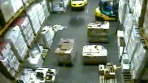 Jak nie należy jeździć wózkiem widłowym, czyli katastrofa w magazynie wódki (wideo)