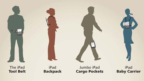 Zapomnijmy na chwilę o dyskusji na temat możliwości iPada i stosunku jego ceny do tego co oferuje. Skupmy się na (z pozoru) prostszym zagadnieniu. Powyższa grafika przedstawia niektóre z możliwych sposobów noszenia iPada. Resztę znajdziecie w dalszej części wpisu.