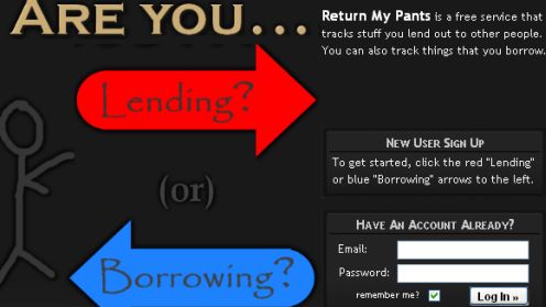 Serwis ReturnMyPants umożliwia śledzenie przedmiotów, które pożyczyliśmy innym ludziom (lub my sami pożyczyliśmy). Tworzymy konto i wprowadzamy opis przedmiotu, dane osoby której pożyczyliśmy książkę czy płytę oraz datę pożyczenia oraz oczekiwaną datę zwrotu. Serwis przypomni nam (wysyłając maila na nasz adres), że czas oddania przedmiotu minął i wyśle maila przypominającego o konieczności oddania przedmiotu zapominalskiemu znajomemu (jeśli zaznaczymy taką opcję. Serwis wysyła maila po angielsku, więc ta funkcjonalność nie jest dla nas jakoś wyjątkowo użyteczna). Możemy też ustawić przypomnienie tego, że to my zawalamy z oddaniem przedmiotu. Na naszym koncie możemy śledzić jednocześnie pożyczki ?od? i ?do?.