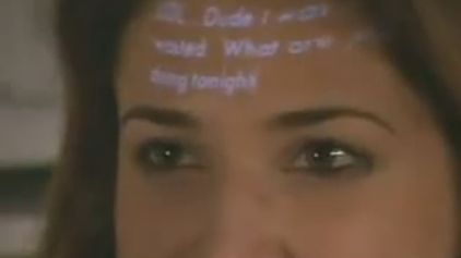 Ile razy zdarzało się wam rozmawiać z kimś, kto co chwila opuszcza głowę, spogląda na trzymaną w ręku komórkę i pisze SMS-a? Nie jest to komfortowa sytuacja, szczególnie, gdy przez większość czasu człowiek odnosi wrażenie, że mówi do czubka głowy. Co jednak, jeśli ktoś nie potrafi żyć bez SMS-ów? Może wyświetlić wiadomość na czole rozmówcy?