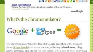 Chromulator to serwis, który łączy to o czym się pisze z tym, czego się szuka. Innymi słowy mówiąc - Chromomulator pobiera dane z Google Trends (czyli śledzi to, co wyszukujemy) i szuka odniesień w YouTube, Google News, Google Blog, Digg, Technorati, Flickr i Delicious. TOP 100 najbardziej bieżących z bieżących prezentowana jest w formie dwóch kolumn po bokach strony.