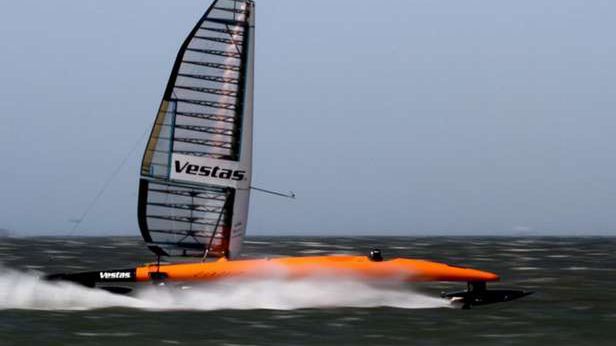 VESTAS Sailrocket 2 learning to walk before she can run.