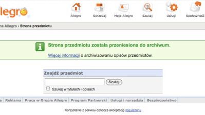 Korzystając z serwisu Allegro, pewnie nie raz zdarzyło Ci się natknąć na charakterystyczny komunikat „Strona przedmiotu została przeniesiona do archiwum” - nie byłoby w tym nic strasznego, gdyby nie to, że nie mamy dostępu do tego archiwum. Jak sprawdzić w takim wypadku, co było przedmiotem danej aukcji i za co został wystawiony komentarz?