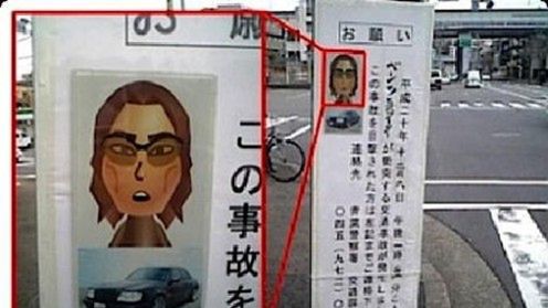Nawet wszelakie dobrodziejstwa służące tylko rozrywce mogą znaleźć swe alternatywne zastosowanie. Przekonali się o tym przechodnie japońskiego miasta Kanagawa. Przedni ubaw mieli przede wszystkim posiadacze własnego alter ego w świecie Nintendo. Do śmiechu nie było poszukiwanemu kierowcy, którego portret pamięciowy stworzono w edytorze Mii!