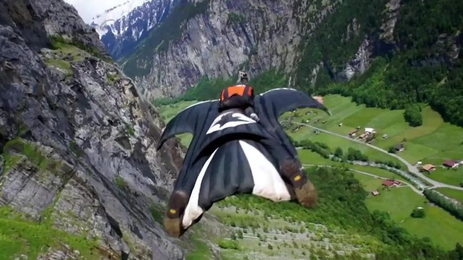 Skacze dwóch panów: Reiner Ebert i Ludovic Woerth. Ubrali się w specjalne kostiumy, które co prawda nie powodują, że mogą latać, ale spowalniają nieuchronny spadek. Oczywiście nie ma mowy o lądowaniu na nogi - obaj mają spadochrony, które otwierają w odpowiednim momencie. Ale nim do tego dojdzie, mają okazję lecieć niczym pikujące ptaki - a dzięki kamerom - umieszczonym na ich kombinezonach - również my mamy okazje poczuć, jak to jest. No, to włączamy filmik na pełny ekran i skaczemy!