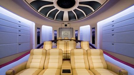 Jak nie trudno się domyślić patrząc na zdjęcie, jest to pokój z kinem domowym przygotowany specjalnie dla absolutnego fana serialu Star Trek The Next Generation. Nie ma to jak zasiąść w fotelu kapitańskim i poczuć się jak Jean-Luc Picard walczący o przyszłość Federacji Zjednoczonych Planet.