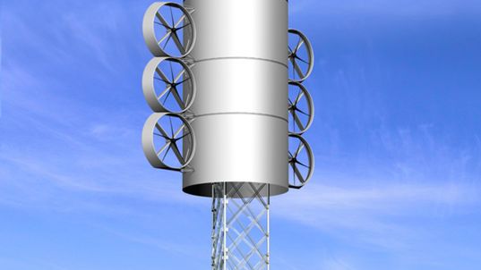 Nowoczesny, efektywny wiatrak nie musi porażać wielkością skrzydeł. Tu pojedynczą, wielką turbinę zamieniono na kilka małych wiatraków, przy czym każdy nich ma 5 ramion. Zalety wersji kompakt?